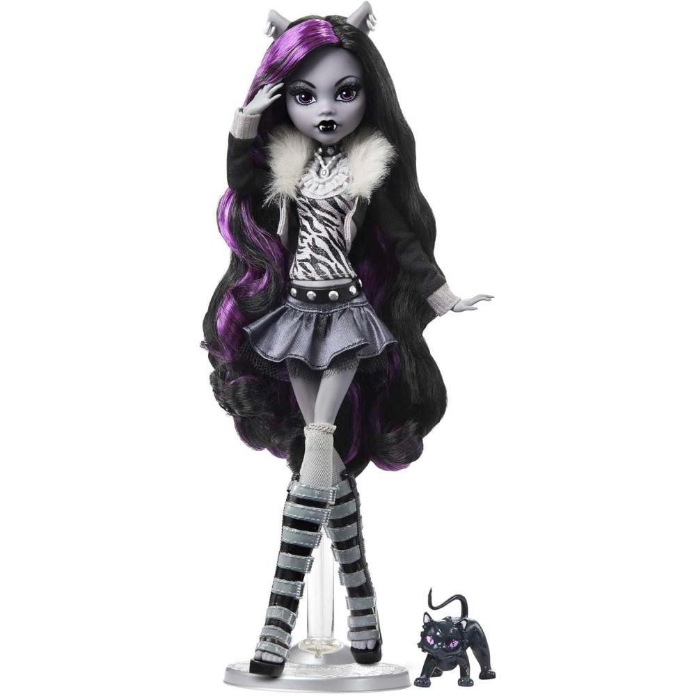Monster High Reel Drama Doll, Cleo De Nile Black and White Reproduction Collectible with Doll-Size and Life-Size Posters, Horror Flick Theme, and Pet(Clawdeen Wolf)